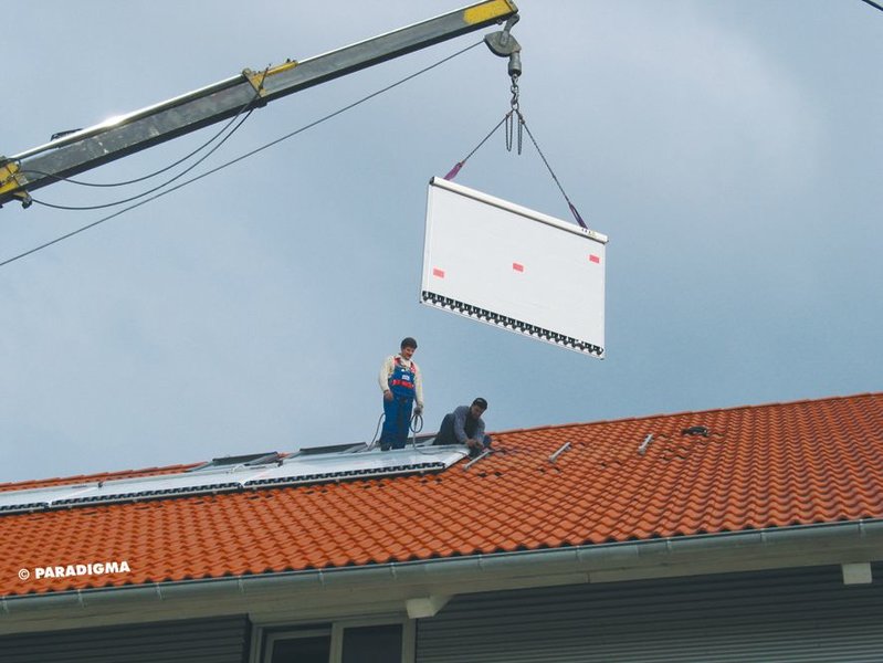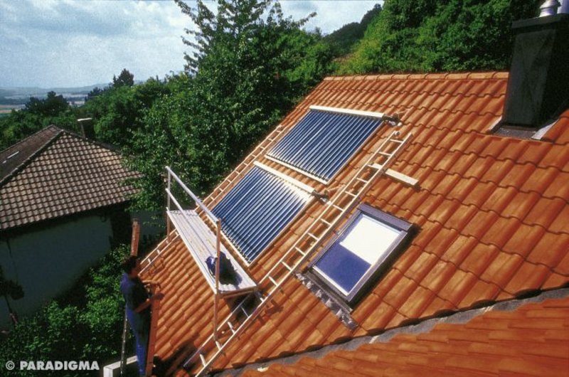Bei der Anbringung auf dem Dach wird die Dachhaut in ihrer Funktion nicht beeinträchtigt. Für die Leitungen ist eine Öffnung nötig. Weiter wird der Sonnenkollektor stabil am Dachsparren abgebracht, so dass er sturmsicher auf Position bleibt. Auch die Ziegel bleiben beim Einbau intakt, es wird lediglich ein Ziegel ausgetauscht, denn es wird eine Öffnung für die Zu- und Ableitung gebraucht.